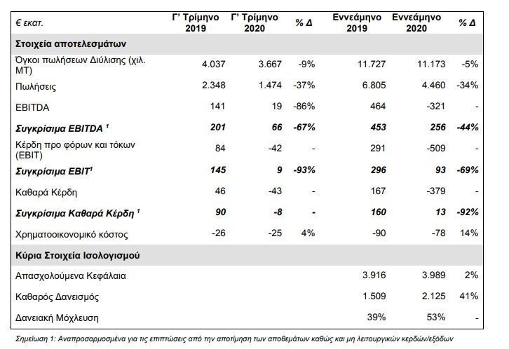 Συγκεκριμένα, η πανδημία COVID-19 προκάλεσε σημαντικές αρνητικές επιπτώσεις στη διεθνή αγορά πετρελαίου, με σημαντική μείωση της παγκόσμιας ζήτησης που εκτιμάται σε -8% για το εννεάμηνο, με αρνητικό αντίκτυπο στις τιμές αργού (-37% Μ.Ο. y-o-y), αλλά και στα περιθώρια διύλισης, που είναι ο βασικός παράγοντας επηρεασμού κερδοφορίας της βασικής δραστηριότητας του Ομίλου.