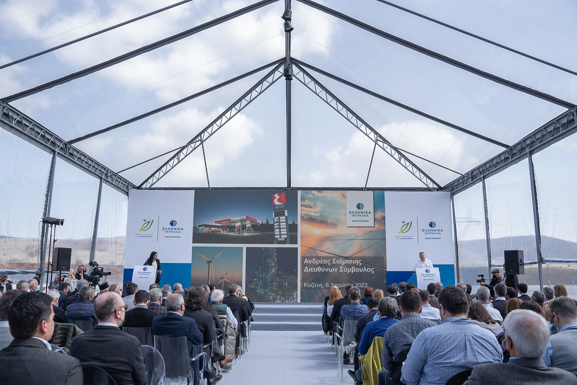 Αναλυτική περιγραφή του Φ/Β πάρκου της Κοζάνης, της προηγμένης τεχνολογίας που αξιοποιήθηκε και των εξειδικευμένων εργασιών κατασκευής του, έκανε μιλώντας στους παριστάμενους ο Γενικός Διευθυντής Στρατηγικού Σχεδιασμού και Νέων Δραστηριοτήτων του Ομίλου ΕΛΠΕ κ. Γιώργος Αλεξόπουλος, ο οποίος επεσήμανε τη συμβολή όλων όσων εργάστηκαν και, φυσικά, της τοπικής κοινωνίας στην ολοκλήρωση του έργου παρά τις αντίξοες συνθήκες λόγω πανδημίας. Όπως σημείωσε, «σε πολύ σύντομο χρονικό διάστημα τα ΕΛΠΕ απέκτησαν εγκατεστημένη ισχύ 300 MW από ΑΠΕ και έχουν θέσει ως μεσοπρόθεσμο στόχο το 1GW μέχρι το τέλος του 2026 και την ανάπτυξη ενός διαφοροποιημένου, ισχυρού χαρτοφυλακίου έργων, άνω των 2 GW σε λειτουργία έως το 2030. Το πρώτο μεγάλο βήμα προς την ενεργειακή μετάβαση έγινε. Και το όραμά μας δεν σταματά εδώ. Συνεχίζουμε να στηρίζουμε με την ενέργειά μας ένα βιώσιμο μέλλον για τον πλανήτη, τα παιδιά μας, για όλους εμάς», κατέληξε στις δηλώσεις του ο κ. Αλεξόπουλος.