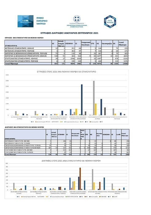 Σύμφωνα με τα στοιχεία του ΓΕΜΗ, το εν λόγω διάστημα δημιουργήθηκαν 4.975 ΙΚΕ, 4.694 ατομικές, 1.982 Ε.Ε., 1.335 Ο.Ε., 667 Α.Ε., 165 ΕΠΕ, 121 αστικές, 36 κοινοπραξίες και 9 ενέργειας. Αντίστοιχα, διαγράφηκαν 725 ατομικές, 570 ΙΚΕ, 505 Ο.Ε., 314 Ε.Ε., 280 ΕΠΕ, 218 Α.Ε., 42 αστικές, 25 κοινοπραξίες και 2 ΣυνΠΕ.