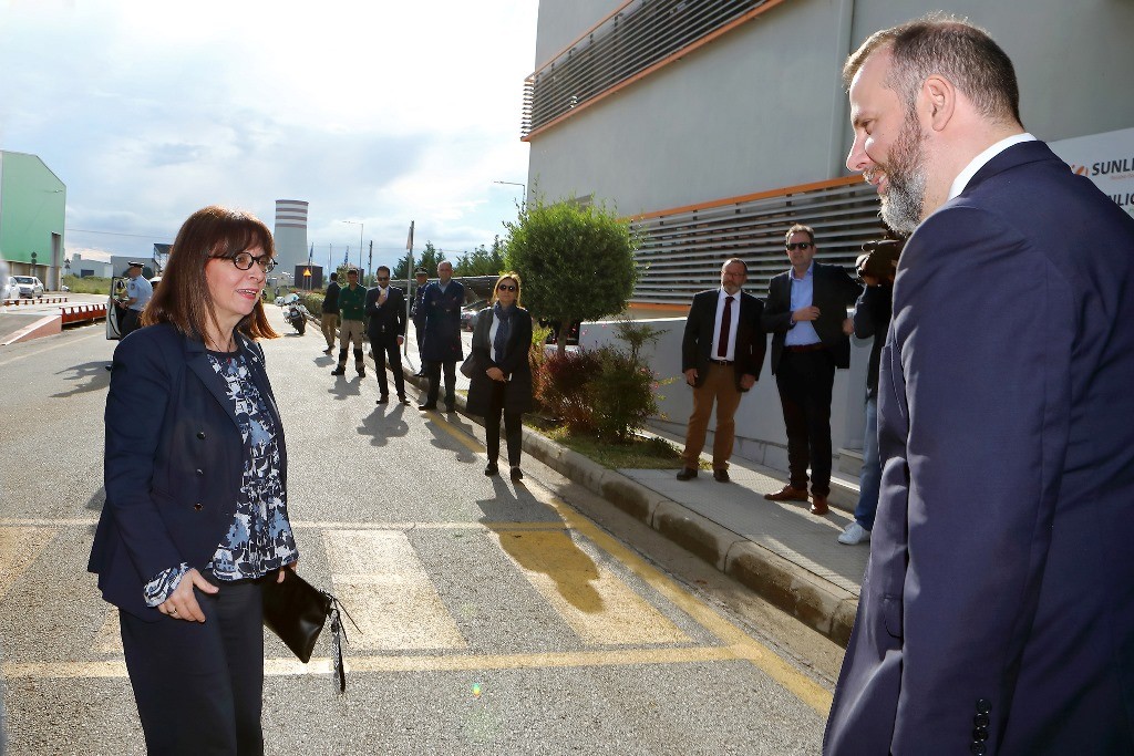 Κατά την επίσκεψή της, η Πρόεδρος της Δημοκρατίας ενημέρωθηκε για τη διεθνοποιημένη εταιρία SUNLIGHT, μέλος του Ομίλου Olympia, που ειδικεύεται στην ανάπτυξη και την παραγωγή καινοτόμων μπαταριών και συστημάτων αποθήκευσης ενέργειας για βιομηχανικές εφαρμογές.