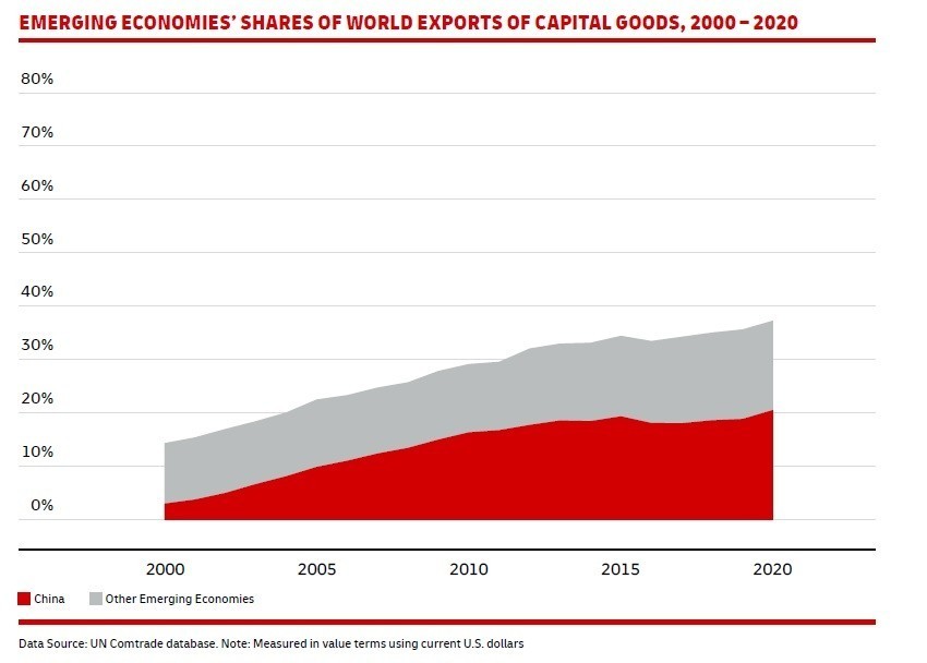 -Οι αναδυόμενες οικονομίες αύξησαν το μερίδιό τους στο παγκόσμιο εμπόριο από 24% το 2000 σε 40% το 2012, με μόνη την Κίνα να οδηγεί περίπου το ήμισυ αυτής της αύξησης. Ωστόσο από τότε ως σήμερα το μερίδιο των αναδυόμενων οικονομιών στο παγκόσμιο εμπόριο έχει αλλάξει ελάχιστα κάτι που δείχνει ότι έχει επέλθει μία ισορροπία μεταξύ ανεπτυγμένων και αναδυόμενων αγορών.
