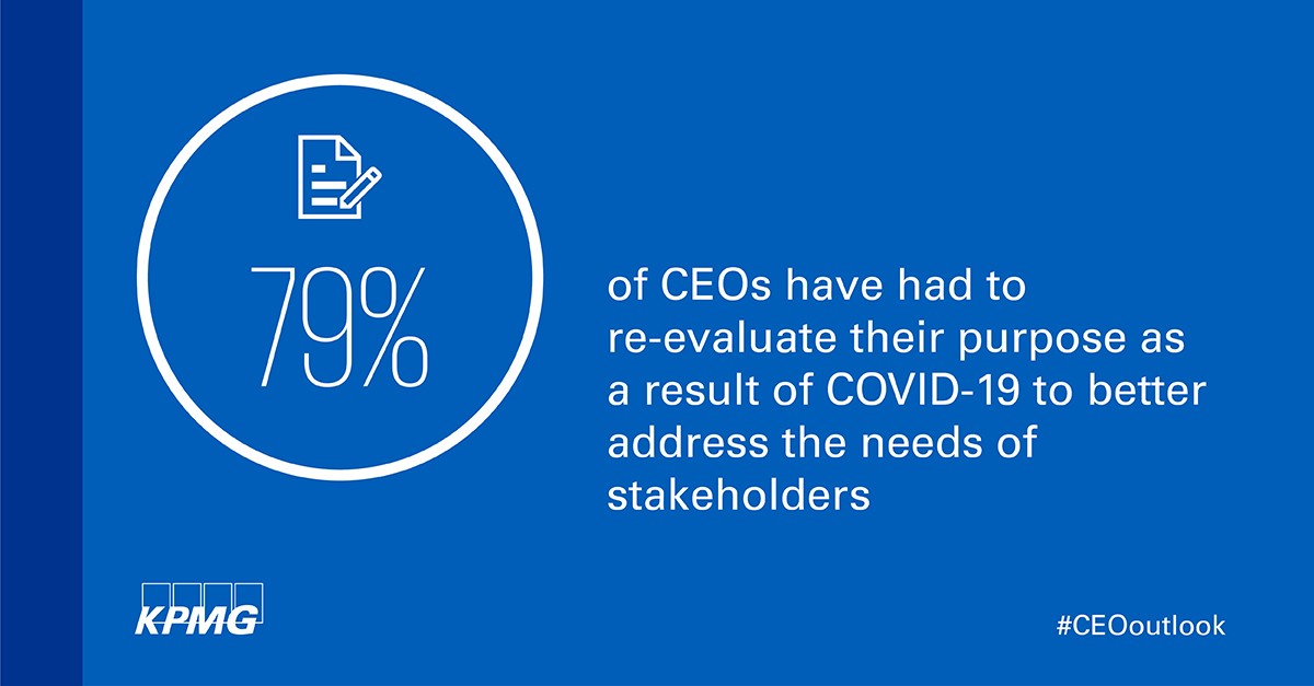 Η πανδημία έχει επιταχύνει την εστίαση των παγκόσμιων στελεχών στον ρόλο τους στην κοινωνία και έχει οδηγήσει σε περαιτέρω έλεγχο των επιχειρηματικών τους πρακτικών. Οι CEOs αισθάνονται ότι οι πρόσφατες εξελίξεις τους ανάγκασαν να εξετάσουν εάν ο σκοπός της εταιρείας τους πληροί τα πρότυπα που αναμένουν τα ενδιαφερόμενα μέρη τους, με 79% να δηλώνουν ότι χρειάστηκε να επανεξετάσουν το σκοπό της επιχείρησής τους ως αποτέλεσμα της κρίσης της νόσου COVID-19 και κατά την ίδια πλειοψηφία (79%) ότι αισθάνονται μεγαλύτερη συναισθηματική σύνδεση με τον σκοπό της επιχείρησής τους από τη στιγμή που ξεκίνησε η κρίση.