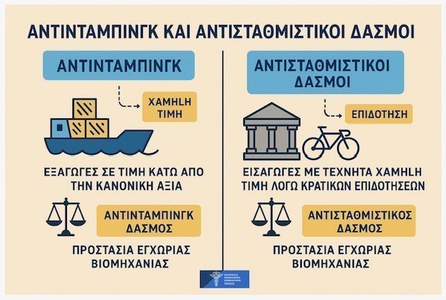 Η Ευρωπαϊκή Ένωση, για να αντιμετωπίσει τον αθέμιτο ανταγωνισμό, οφείλει να επανεξετάσει την πολιτική και τη μέθοδο επιβολής αντισταθμιστικών και αντιντάμπινγκ δασμών, επισημαίνει το Εμπορικό και Βιομηχανικό Επιμελητήριο Πειραιώς. Τα αρμόδια ευρωπαϊκά όργανα έχουν υποχρέωση να αποκαταστήσουν τον υγιή ανταγωνισμό σε μια χρονική συγκυρία όπου, στο πεδίο του ανταγωνισμού, έχουν καταγραφεί κραυγαλέες περιπτώσεις μεθόδων που καθιστούν, εκ των πραγμάτων, «άκυρα» τα όποια μέτρα ισχύουν για την προστασία της ευρωπαϊκής παραγωγής αγαθών έναντι των εισαγόμενων με προέλευση, κυρίως, από την Ασία.
