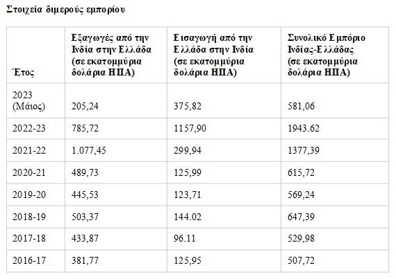 Διμερές εμπόριο Ελλάδας – Ινδίας
