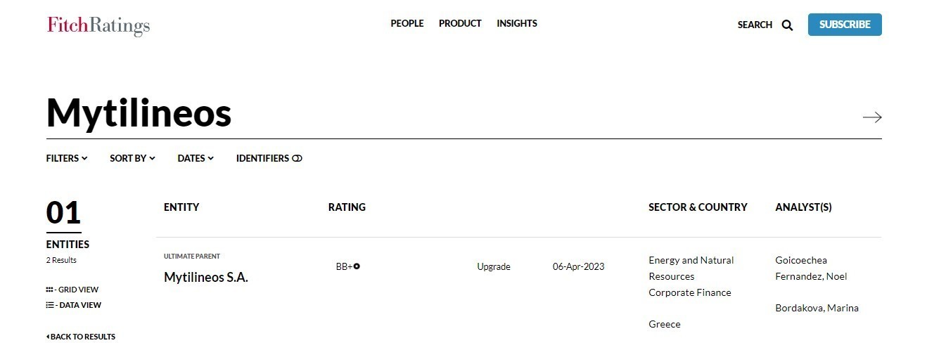 Σε αναβάθμιση του μακροπρόθεσμου αξιόχρεου της Mytilineos S.A από «ΒΒ» σε «ΒΒ+» και με σταθερό outlook προχώρησε η Fitch Ratings. Με την αναβάθμιση αυτή φτάνει μόλις μια βαθμίδα χαμηλότερα από την επενδυτική βαθμίδα.
