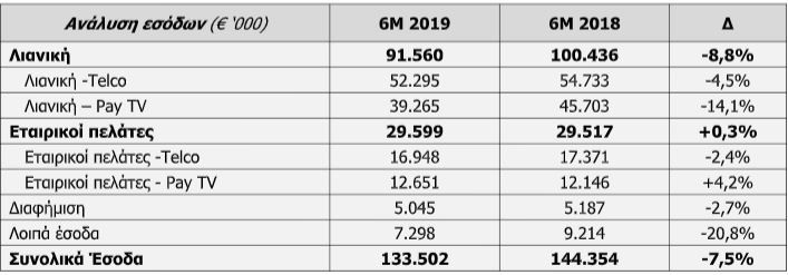 “Στο Α’ Εξάμηνο του 2019 διατηρήσαμε το επίπεδο του EBITDA στα περσινά επίπεδα και καταγράψαμε αύξηση του περιθωρίου EBITDA ως ποσοστού επί των πωλήσεων, επιβεβαιώνοντας την ανθεκτικότητα της εταιρείας μας σε ένα περιβάλλον που χαρακτηρίζεται από την υπερφορολόγηση της αγοράς συνδρομητικής τηλεόρασης και τον αθέμιτο ανταγωνισμό σε σχέση με τις πολυεθνικές εταιρείες που παρέχουν παρόμοιες υπηρεσίες.