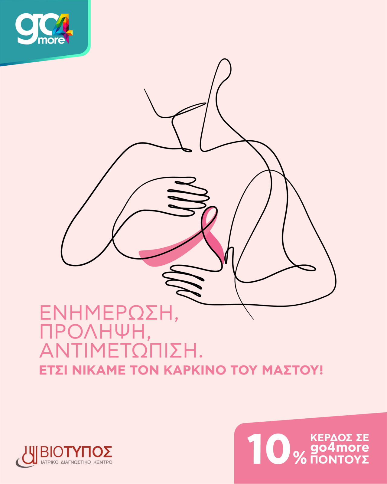 Σε αυτό το πλαίσιο, το πρόγραμμα επιβράβευσης go4more και τα Ιατρικά Διαγνωστικά Κέντρα Βιότυπος, μας υπενθυμίζουν τη σπουδαιότητα της πρόληψης και προσφέρουν στα μέλη του προγράμματος ένα σημαντικό κίνητρο. Συγκεκριμένα, με τη χρήση των καρτών της Εθνικής Τράπεζας κερδίζετε 10% σε go4more πόντους στο κόστος των εξετάσεων.