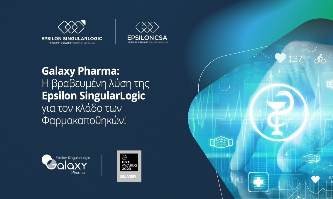 Ασημένιο βραβείο απέσπασε στα φετινά Bite Awards 2023 το Galaxy Pharma, η ολοκληρωμένη λύση διαχείρισης Φαρμακαποθηκών των Epsilon SingularLogic και Epsilon CSA, μέλη του Ομίλου EPSILON NET, αναδεικνύοντας την υψηλή τεχνογνωσία και εξειδίκευση του Ομίλου στον κλάδο των Φαρμακαποθηκών. Η λύση υποστηρίζει το σύνολο των επιχειρησιακών αναγκών των φαρμακαποθηκών, σε μια ενιαία λύση, ενώ, παράλληλα, παρέχει εξελιγμένα εργαλεία παρακολούθησης και βελτιστοποίησης των εταιρικών διαδικασιών.