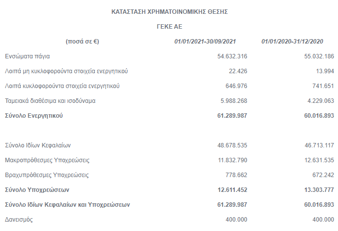 H εταιρεία ΓΕΚΕ ΑΕ, σε συνέχεια επιστολής της επιτροπής Κεφαλαιαγοράς με αριθμό πρωτοκόλλου 2596/09.11.2021 η οποία κοινοποιήθηκε σε όλους τους εκδότες με κινητές αξίες εισηγμένες προς διαπραγμάτευση στην ρυθμιζόμενη αγορά του Χρηματιστηρίου Αθηνών, ενημερώνει το επενδυτικό κοινό για τα βασικά οικονομικά μεγέθη γ΄ τριμήνου της χρήσης 2021, καθώς και τις εξελίξεις στην δραστηριότητά της.