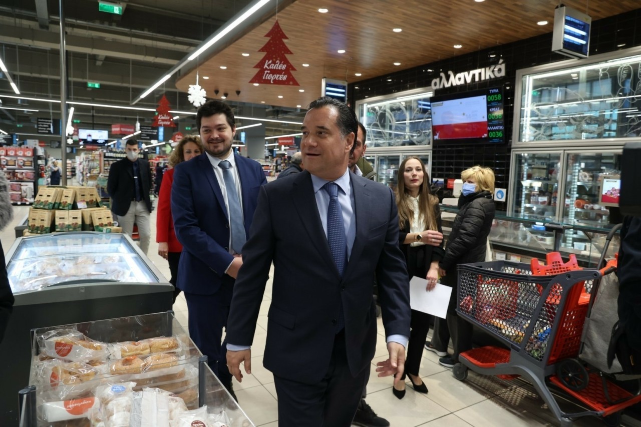 Ο Υπουργός Ανάπτυξης και Επενδύσεων Άδωνις Γεωργιάδης, συνοδευόμενος από τον Γ.Γ. Εμπορίου και Προστασίας του Καταναλωτή Σωτήρη Αναγνωστόπουλο, επισκέφθηκαν σήμερα, Πέμπτη 22 Δεκεμβρίου 2022, δύο καταστήματα των αλυσίδων σούπερ μάρκετ «Κρητικός» και «ΑΒ Βασιλόπουλος», καθώς την εβδομάδα που πέρασε κατέγραψαν μείωση στις τιμές των προϊόντων του «Καλαθιού του Νοικοκυριού».