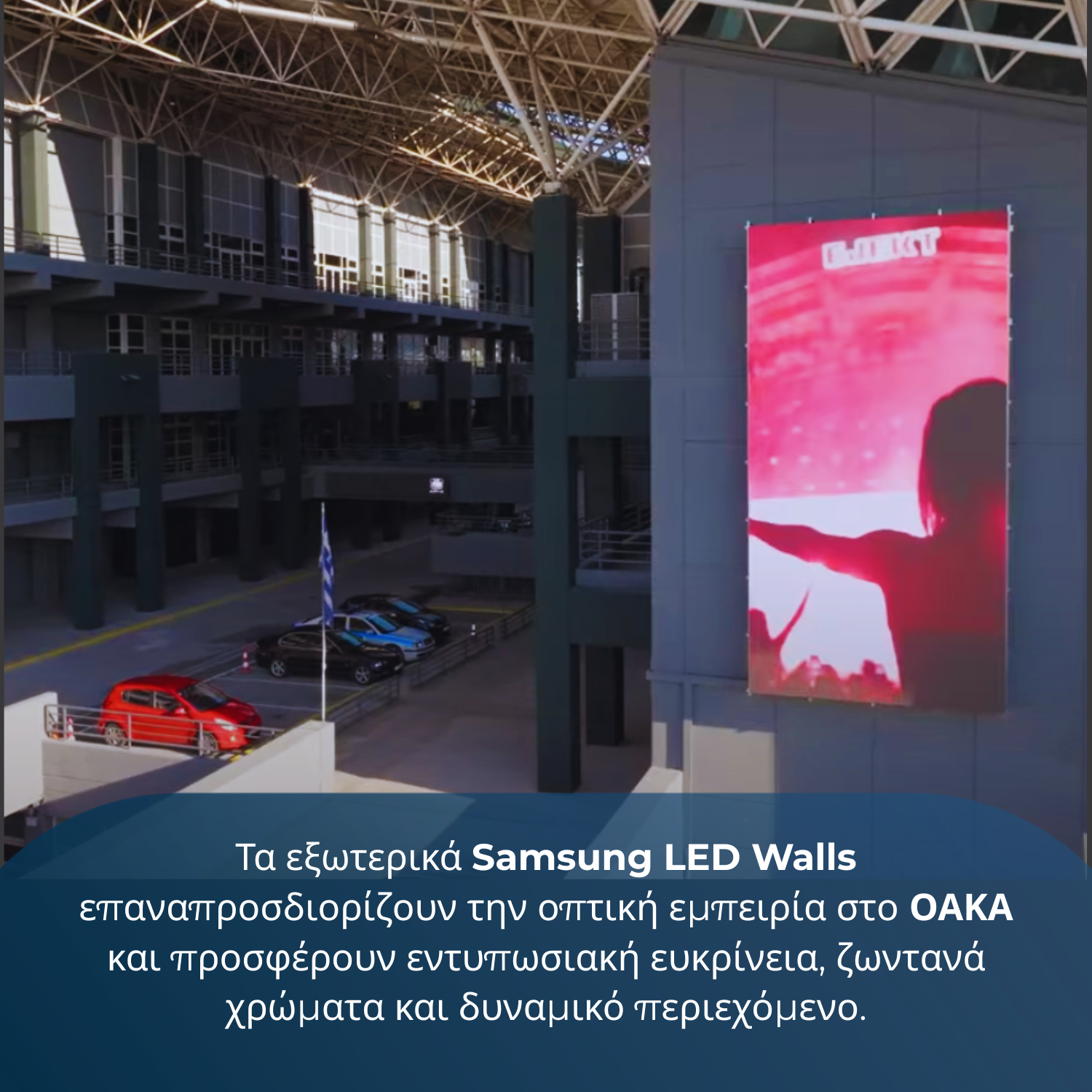 Στο πλαίσιο της συνεργασίας αυτής, το ΟΑΚΑ απέκτησε εξωτερικά Samsung LED Walls, τα οποία επαναπροσδιορίζουν την οπτική εμπειρία στον χώρο, ενώ οι VIP Suites εξοπλίστηκαν με οθόνες Samsung, προσφέροντας ανεπανάληπτη θέαση στους επισκέπτες.