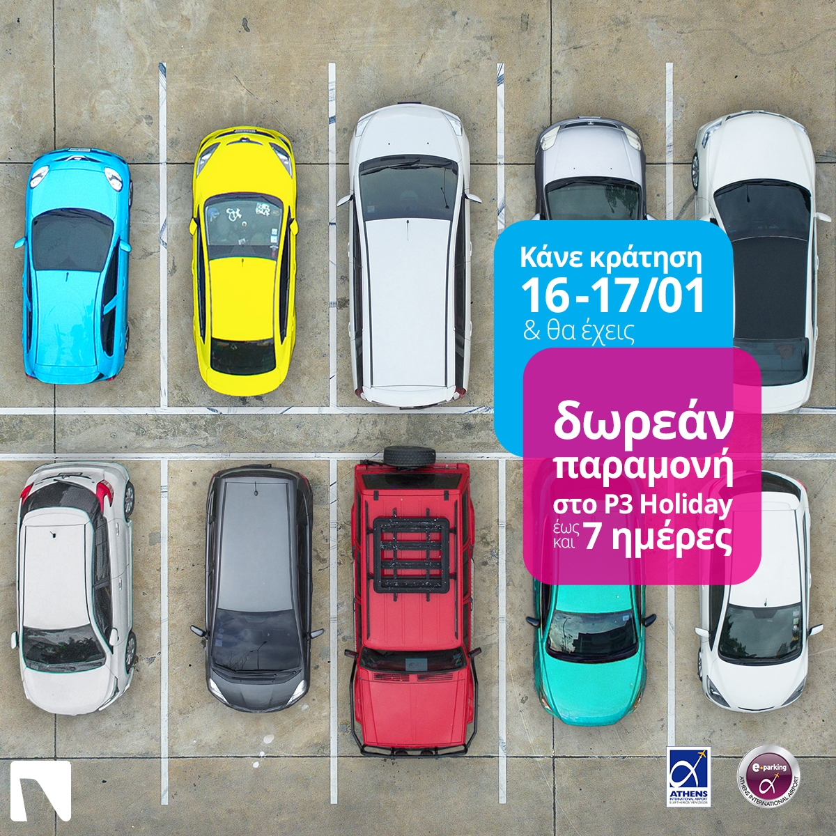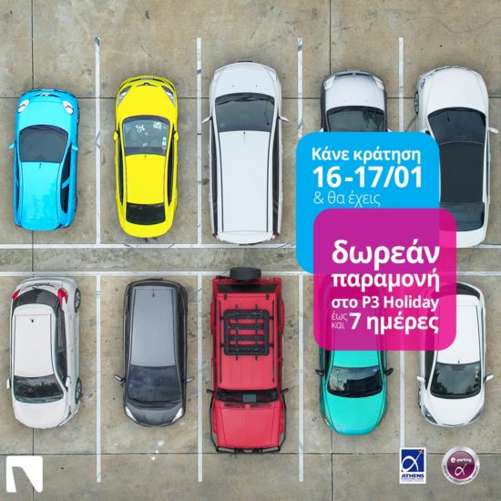 Με κάθε κράτηση αεροπορικού εισιτηρίου από τις 16 Ιανουαρίου στις 00:01 μέχρι και τις 17 Ιανουαρίου στις 23:59, η airtickets χαρίζει έως και 7 ημέρες δωρεάν παραμονή στο P3 Holiday του αεροδρομίου Ελ. Βενιζέλος. Με την ολοκλήρωση της κράτησής σου μέσα στο διάστημα των δύο παραπάνω ημερών, θα λάβεις τον ειδικό κωδικό με τον οποίο μπορείς να εξαργυρώσεις τη δωρεάν παραμονή σου.