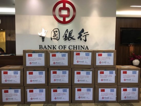 Ο μεγαλύτερος χρηματοπιστωτικός όμιλος της Κίνας μέσω της Bank of China Luxembourg και σε συνεργασία με το Hellenic Trade Council (HETCO) δώρισε 10.000 ιατρικές μάσκες υψηλής προστασίας στις υπηρεσίες του Δήμου Αθηναίων για τις ανάγκες προστασίας των υπαλλήλων τους. Ο Δήμαρχος Αθηναίων, κ. Κώστας Μπακογιάννης, ευχαρίστησε τον Πρόεδρο της Bank of China (BoC), κ. Liu Liange, και την Πρόεδρο της Bank of China Luxembourg, κα Zhou Lihong για τη σημαντική συνεισφορά τους στην προσπάθεια της Ελλάδας να αντιμετωπίσει την επιδημία του COVID-19. Επιπλέον, τόνισε ότι ο Δήμος Αθηναίων είναι αποφασισμένος να προστατέψει τους πολίτες της Αθήνας ενισχύοντας τις υπηρεσίες υγείας του Δήμου και τα Δημοτικά Ιατρεία.