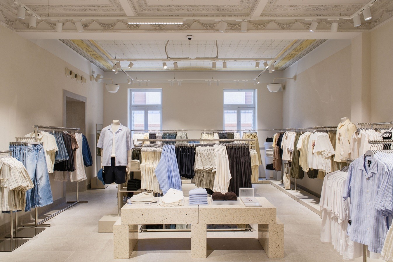 Το νέο μοντέλο καταστημάτων της H&M υπό τον τίτλο “Frame Concept” απευθύνεται σε όλη την οικογένεια συγκεντρώνοντας όλη την γκάμα προϊόντων του brand από γυναικεία, ανδρικά, παιδικά και H&M Home, συνδυάζοντας παράλληλα ψηφιακές καινοτομίες, όπως «έξυπνα» δοκιμαστήρια, οθόνες κοκ για την ευκολία των καταναλωτών. Πρόκειται για μια νέα εποχή για τη μόδα, που συνδυάζει βιώσιμο design, ψηφιακές καινοτομίες και fashion-forward ατμόσφαιρα, σύμφωνα με τον Project Visual Lead του έργου, κ. Αλέξανδρο Τσαμούρη.