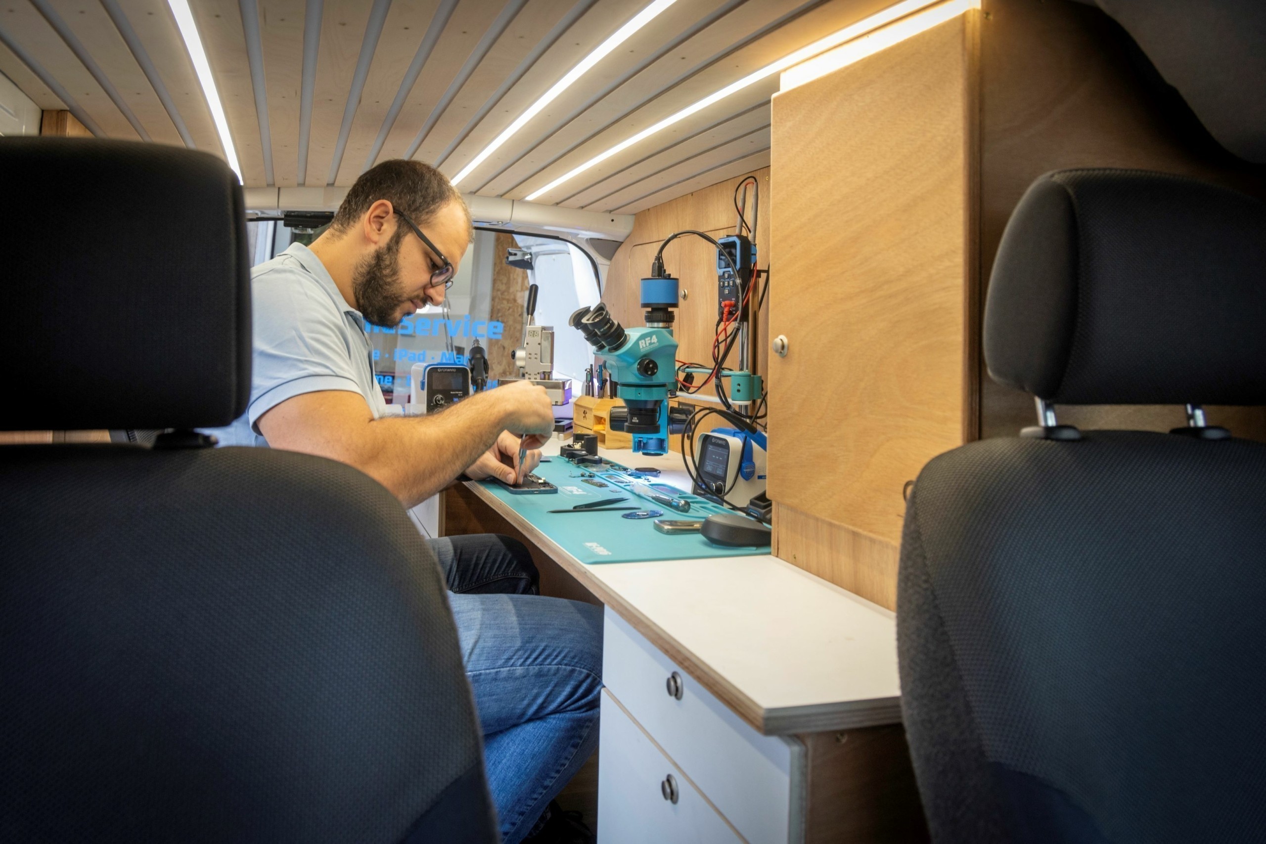 Η αλυσίδα διαθέτει 4 καταστήματα σε Αθήνα και Θεσσαλονίκη, αλλά γιατί να μπεις στον κόπο να μεταφέρεις τη συσκευή σου, όταν μπορεί να έρθει το service σε σένα; Με την κατ’ οίκον υπηρεσία iHomeService, ένας πιστοποιημένος τεχνικός επισκέπτεται τον χώρο σου, πραγματοποιεί τη διάγνωση και ολοκληρώνει την επισκευή άμεσα, χωρίς καθυστέρηση, χωρίς αναμονή, χωρίς απώλεια χρόνου. Η υπηρεσία διατίθεται σε Αθήνα και Θεσσαλονίκη, με γρήγορο ραντεβού και αυθημερόν εξυπηρέτηση.