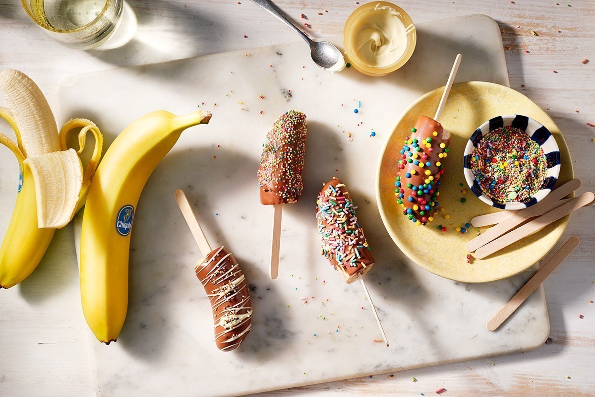 Καλοκαίρι σημαίνει διασκέδαση κάτω από τον ήλιο και δεν υπάρχει τίποτα πιο διασκεδαστικό από μια παγωμένη λιχουδιά. Απολαύστε αυτά τα δροσιστικά ξυλάκια μπανάνας που θα γίνουν τα αγαπημένα των παιδιών σας. Η δροσερή και γλυκιά γεύση που έχουν οι παγωμένες μπανάνες Chiquita θα είναι μια ευχάριστη έκπληξη σε συνδυασμό με τη σοκολάτα. Μπορείτε να αντικαταστήσετε την χρωματιστή τρούφα με κάτι διαφορετικό, όπως ζαχαρωτά ή καρύδα, οι επιλογές είναι ατελείωτες! Σερβίρετέ τα σε ένα απογευματινό μπάρμπεκιου ή για να γιορτάσετε την Ημέρα των Banana Lovers και όλοι θα τα λατρέψουν!