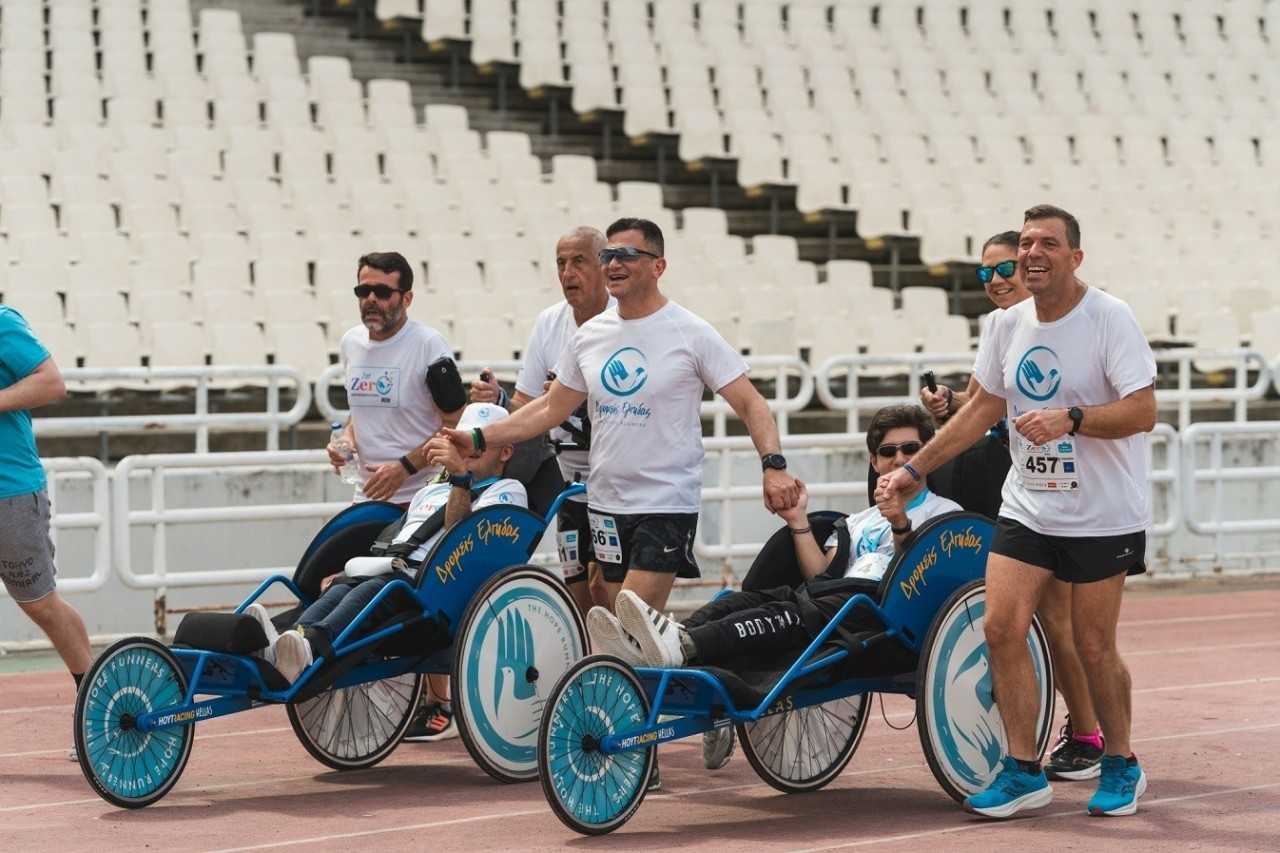 Προσφέροντας ένα, υψηλών προδιαγραφών, αμαξίδιο, της εταιρείας HOYT (USA), κατασκευασμένο από αλουμίνιο, στελέχη της εταιρείας έτρεξαν μαζί με ένα παιδί ΑμεΑ, στο 1st Zero Discrimination Run, που διοργάνωσε ο σύλλογος την Κυριακή 14.05.2023, στο ΟΑΚΑ.