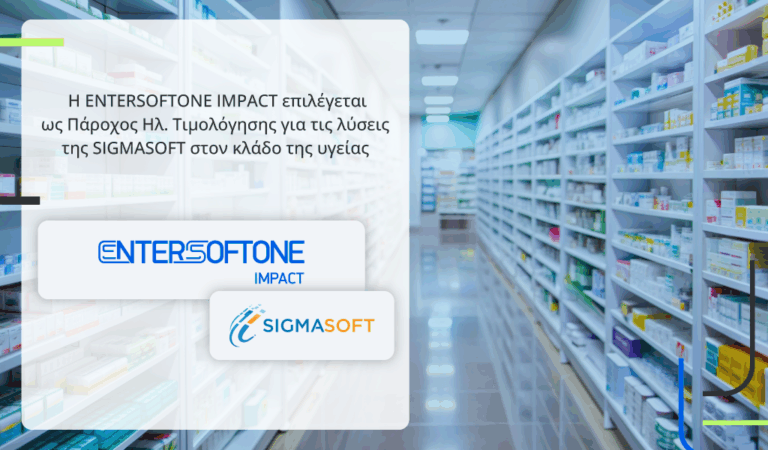 Η ENTERSOFTONE IMPACT, κορυφαίος πάροχος ηλεκτρονικής τιμολόγησης, ανακοινώνει τη σύναψη στρατηγικής συνεργασίας με τη Sigmasoft, εταιρεία που αναπτύσσει ολοκληρωμένες λύσεις πληροφορικής για επιχειρήσεις, οργανισμούς και ιδιώτες στον Ιδιωτικό και Δημόσιο Τομέα.