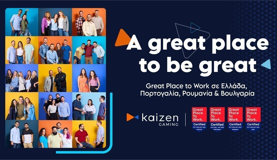 Φέτος, για μια ακόμη φορά, η Kaizen Gaming, η μεγαλύτερη ελληνική gametech εταιρία, αναγνωρίστηκε ως Great Place to Work® στην Ελλάδα, ενώ για πρώτη φορά έλαβε την ομώνυμη πιστοποίηση και σε Πορτογαλία, Ρουμανία και Βουλγαρία, χώρες στις οποίες έχει αναπτύξει ισχυρή παρουσία και δραστηριότητα. Από μια ομάδα 20 ατόμων το 2012, η Kaizen Gaming σήμερα μετρά πάνω από 1.600 Kaizeners σε όλο τον κόσμο και είναι μια από τις ταχύτερα αναπτυσσόμενες gametech εταιρίες διεθνώς. Η ανάπτυξη ιδίας τεχνολογίας είναι αυτή που της έχει επιτρέψει να εξελιχθεί και να επεκταθεί σε νέες αγορές με μεγάλη ταχύτητα. Άλλωστε, Kaizen στα Ιαπωνικά σημαίνει “συνεχής εξέλιξη”, και είναι το motto που αποτυπώνει το πνεύμα της εταιρίας.