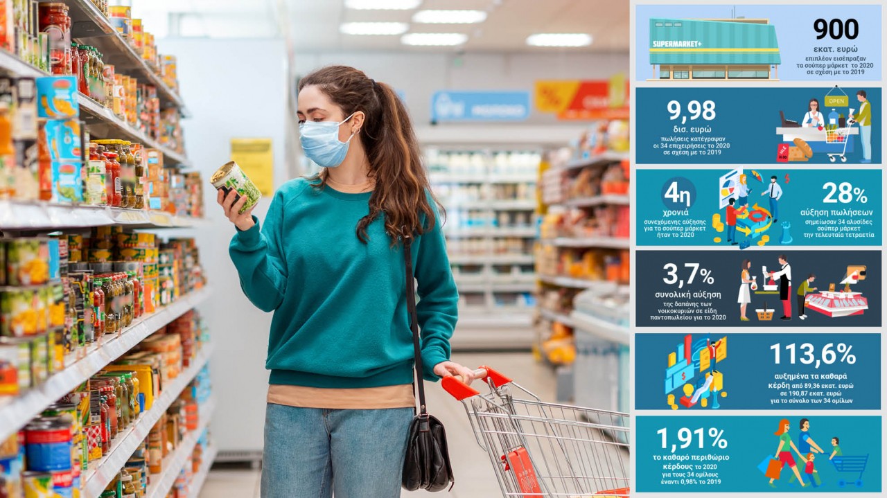 Επιχειρήσεις Η πανδημία εκτόξευσε τις πωλήσεις των σούπερ μάρκετ – Ιnfographic Τι δείχνουν οι ισολογισμοί 34 αλυσίδων σούπερ μάρκετ, που αποτελούν το δείγμα ανάλυσης της Convert Group Σπύρος Αλεξίου 24 Νοεμβρίου 2021 - 10:30 Σχεδόν 900 εκατ. ευρώ επιπλέον εισέπραξαν τα σούπερ μάρκετ το 2020 σε σχέση με το 2019 Σούπερ Μάρκετπωλήσεις