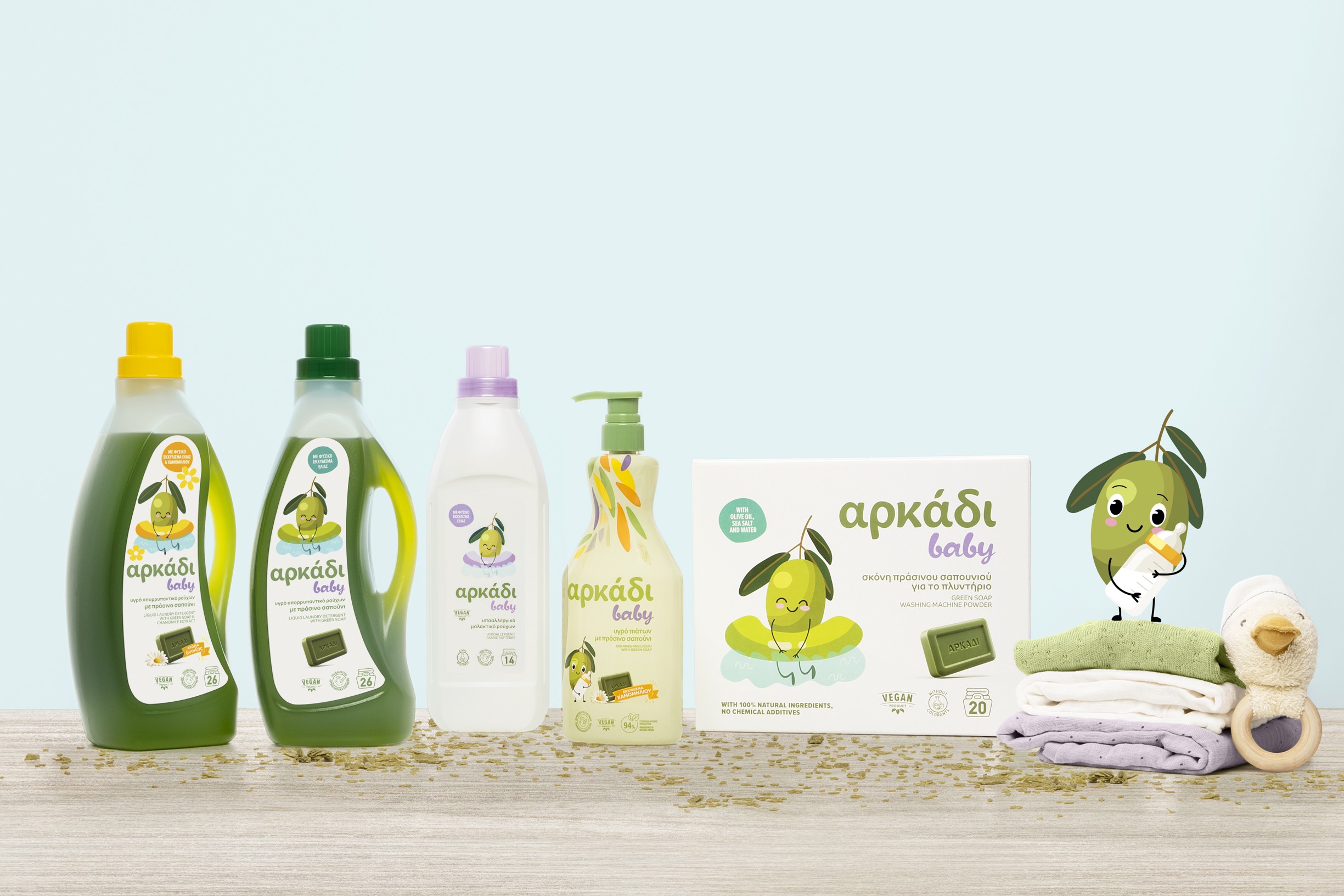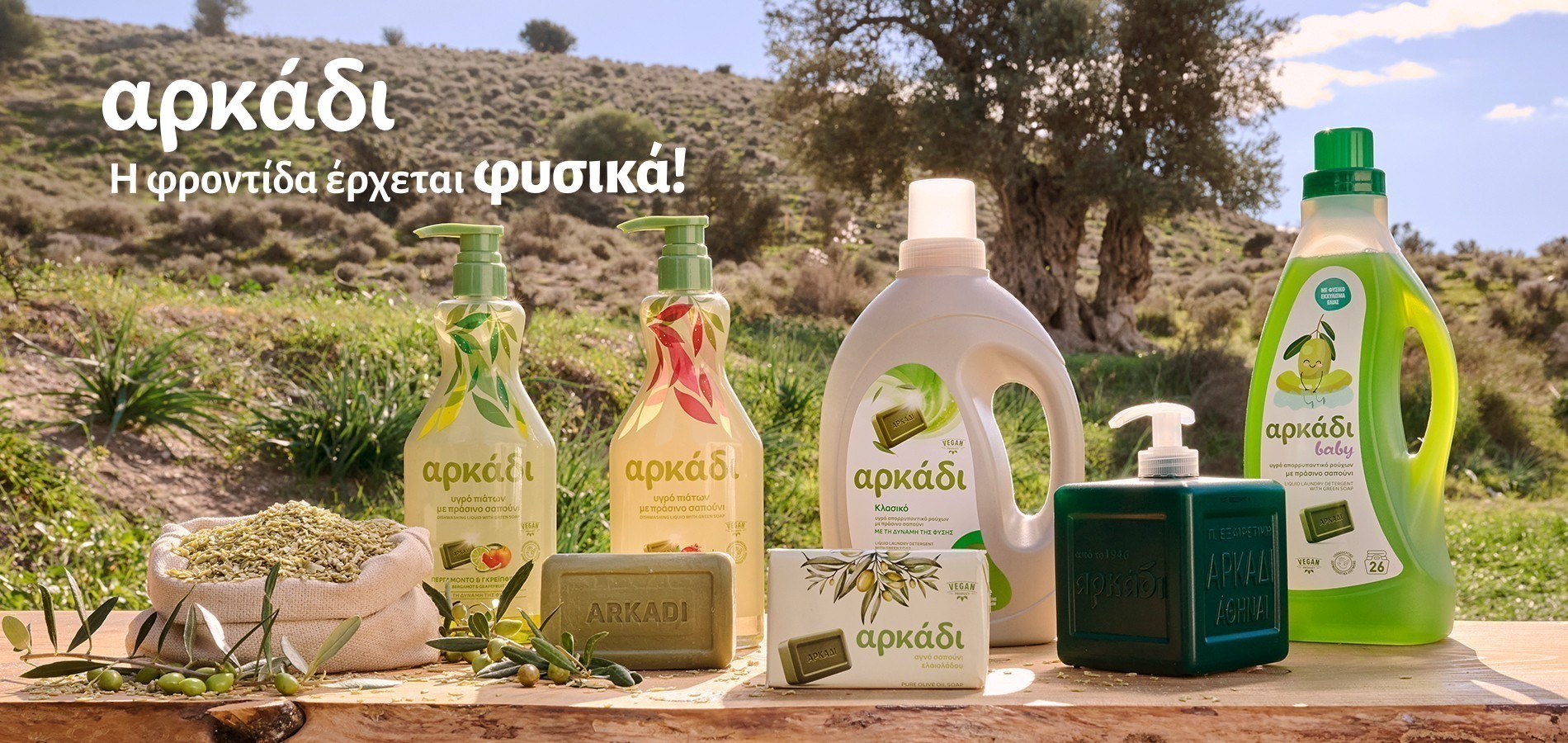 Με το μήνυμα «Η φροντίδα έρχεται φυσικά!», η υψηλή ποιότητα και η αγνή σύνθεση του Αρκάδι, με πράσινο σαπούνι και ένζυμα φυσικής προέλευσης, συνδυάζεται με την τεχνογνωσία της Παπουτσάνης σε μια ολοκληρωμένη σειρά vegan προϊόντων για το σπίτι.