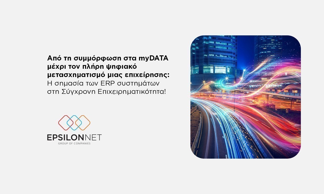 Ο Όμιλος EPSILON NET με πολυετή εμπειρία και τεχνογνωσία στην ελληνική νομοθεσία και αγορά, προσφέρει λύσεις που εξασφαλίζουν πλήρη φορολογική συμμόρφωση και αυτόματη διασύνδεση με τα συστήματα της, προσφέροντας ταυτόχρονα σημαντικά επιχειρησιακά οφέλη.
