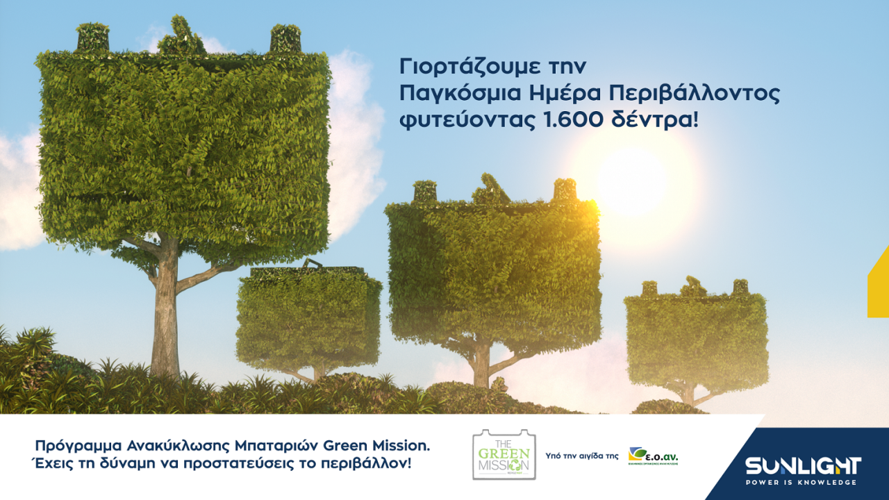 Η SUNLIGHT, μέλος του Ομίλου Olympia, με αφορμή την Ημέρα Περιβάλλοντος, ανακοινώνει ένα ολοκληρωμένο πρόγραμμα δεντροφύτευσης, μέσω της πρωτοβουλίας Green Mission. Η εταιρεία διαχρονικά αναγνωρίζει τις σημαντικές ευκαιρίες που προσφέρει η κυκλική οικονομία για τις επιχειρήσεις, τόσο από την άποψη της οικονομικής ανάπτυξης και των ανταγωνιστικών πλεονεκτημάτων όσο και για την προστασία του περιβάλλοντος. Στο πλαίσιο αυτό, από το 2015 που λειτουργεί η μονάδα ανακύκλωσης Sunlight Recycling έως και σήμερα, έχει συλλέξει και ανακυκλώσει περισσότερο από 108.000 τόνους παλαιών μπαταριών και άλλων ανακυκλώσιμων υλικών, στις εγκαταστάσεις της Κομοτηνής. Παράλληλα, η εταιρεία έχει ξεκινήσει ήδη, μέσω του νέου υπερσύγχρονου ερευνητικού κέντρου λιθίου, τη μελέτη για την ανακύκλωση μπαταριών και την ελαχιστοποίηση των επικίνδυνων στερεών αποβλήτων λιθίου.
