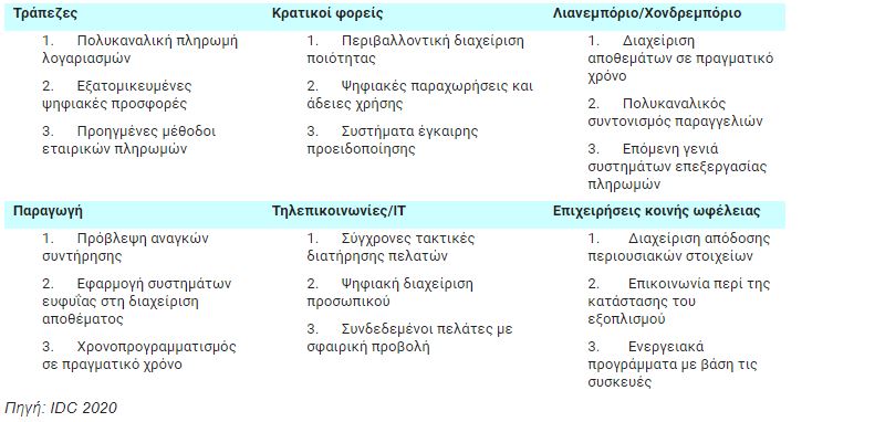 Στη σημερινή πραγματικότητα, όπου πολλές επιχειρήσεις παλεύουν με τις επιπτώσεις της πανδημίας της Covid-19, οι διευθυντές επιχειρήσεων δέχονται αυξανόμενες πιέσεις να αποδείξουν ότι οι επενδύσεις που σχεδιάζουν στον ψηφιακό μετασχηματισμό θα φέρουν πραγματική αξία για τον οργανισμό. Ερωτηθέντες για τις απαιτήσεις τους στο πεδίο του υφιστάμενου ή μελλοντικού ψηφιακού μετασχηματισμού, οι συμμετέχοντες στην έρευνα υπέδειξαν την πιο σημαντική πρωτοβουλία για τον τομέα τους: