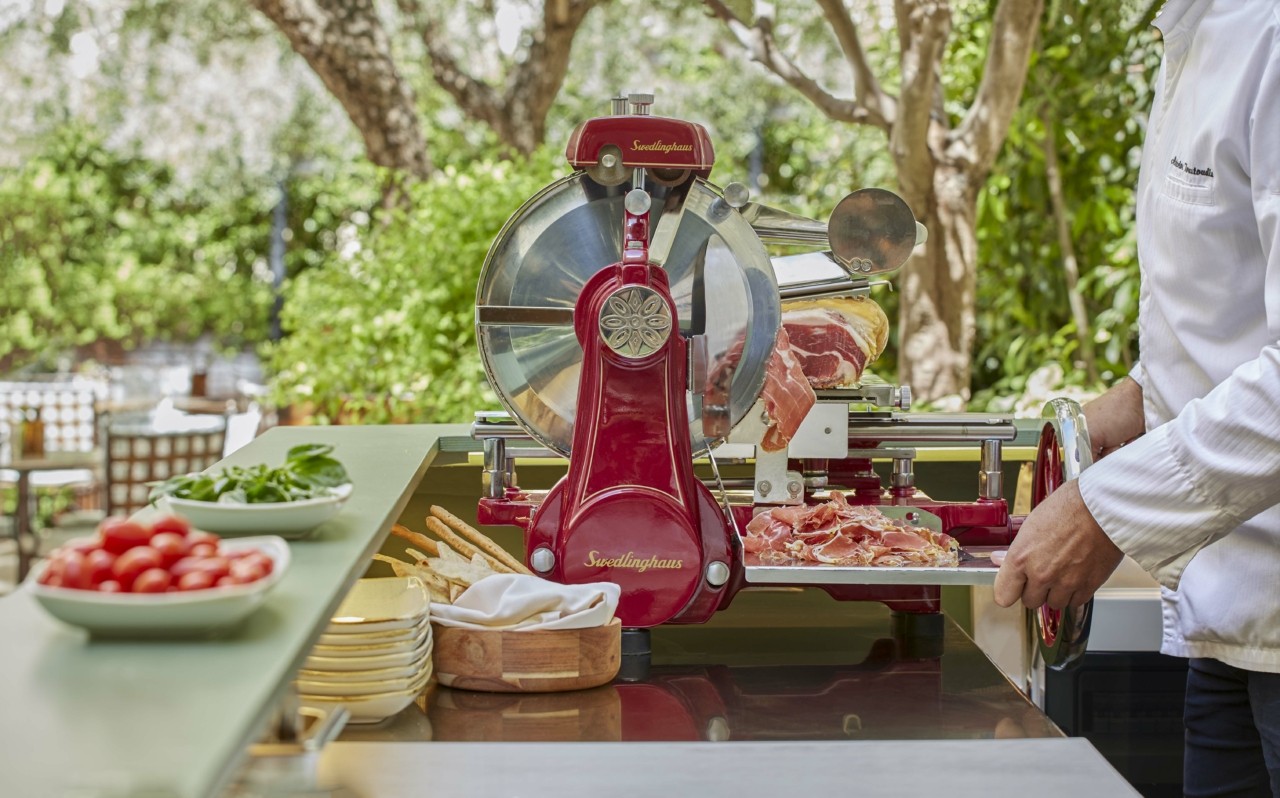 Η συλλογή τυριών του μενού έχει ελληνικό άρωμα καθώς περιλαμβάνει γραβιέρα τρούφας, μανούρα Σίφνου, παλαιωμένο κασέρι Σοχού και σερβίρεται με το εκλεκτό αλλαντικό ημέρας – Jamon Iberico, Prosciutto San Daniele, σαλάμι Sbriciolona – που κόβεται επί τόπου σε λεπτές φέτες με την εντυπωσιακή κόκκινη vintage μηχανή κοπής και φτάνει στο τραπέζι σας σε μια εξαιρετική παρουσίαση με αγκινάρες Τήνου, σαλάμι σύκου Ευβοίας και ελιές. Αξίζει επίσης να δοκιμάσετε τη συγκλονιστική panzanella με γλυκά ντοματίνια και βουβαλίσια Burrata Κερκίνης και τη μπρουσκέτα με τις περίφημες ισπανικές αντζούγιες.