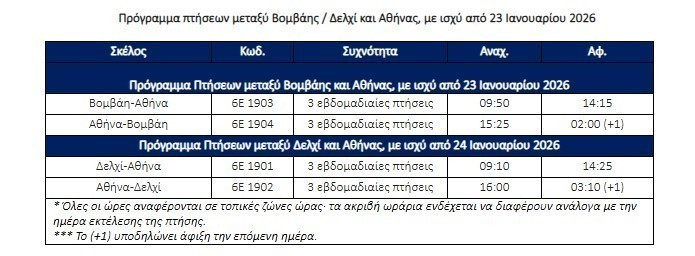 Τις απευθείας πτήσεις μεταξύ Βομβάης και Αθήνας, εγκαινίασε σήμερα η IndiGo, σηματοδοτώντας το «ντεμπούτο» της σε πτήσεις μεγάλων αποστάσεων με αεροσκάφος στενής ατράκτου, με την αξιοποίηση του πρώτου στην Ινδία, Airbus A321XLR. Από αύριο, 24 Ιανουαρίου 2026, η IndiGo θα συνδέει την Αθήνα και με το Δελχί, με το ίδιο αεροσκάφος. Με αυτά τα δρομολόγια η IndiGo γίνεται ο πρώτος ινδικός αερομεταφορέας που θα επιχειρεί απευθείας στις δύο χώρες, καθώς θα εκτελεί τρεις πτήσεις την εβδομάδα σε κάθε προορισμό, ενώ σχεδιάζει να ενισχύσει περαιτέρω την ελληνική διασυνδεσιμότητα προσθέτοντας σταδιακά προορισμούς.