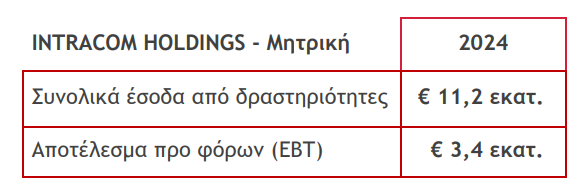 Η INTRACOM HOLDINGS (ATHEX: INTKA) ανακοίνωσε τα οικονομικά αποτελέσματα του έτους 2024, σύμφωνα με τα διεθνή λογιστικά πρότυπα: