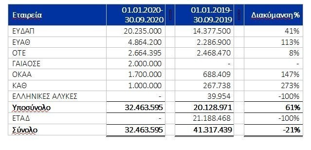 Εντός του πρώτου εννεαμήνου, και χάρη στην ενισχυμένη κερδοφορία και ρευστότητα του έτους 2019 των εταιρειών του χαρτοφυλακίου της ΕΕΣΥΠ, αυξήθηκαν σημαντικά τα έσοδα από τις εταιρείες που διένειμαν μέρισμα κατά τη διάρκεια του 2020, παρά τις αντίξοες συνθήκες εξαιτίας της πανδημίας.