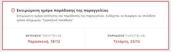 Σύμφωνα με την εταιρεία οι παραγγελίες εκτελούνται από 18/12 με παράδοση στις 23 του μήνα σε περίπτωση πληρωμής με κάρτα.