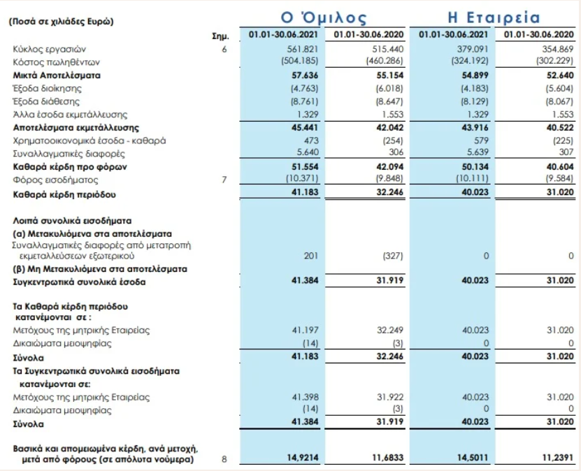 - Ο κύκλος εργασιών ανέβηκε από τα 515,4 στα 561,8 εκατ. ευρώ