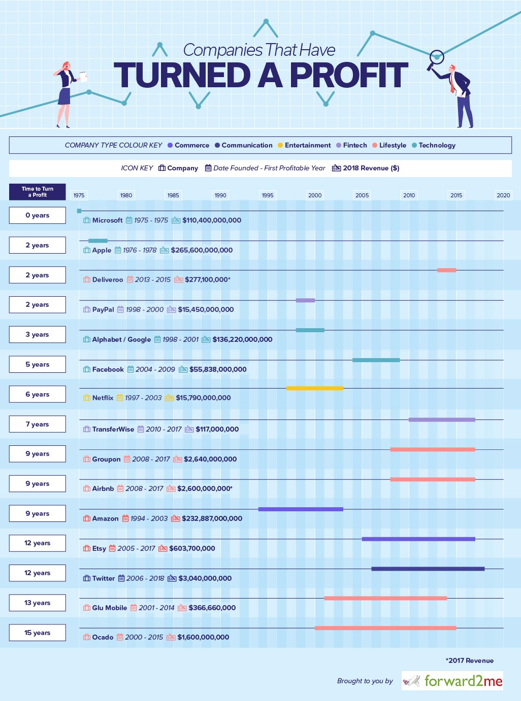 Όλοι έχουμε ακούσει για τα έσοδα-μαμούθ που βγάζουν ορισμένες από τις μεγαλύτερες εταιρείες παγκοσμίως, ωστόσο μπορεί να χρειαστούν πολλά χρόνια, ακόμα και για τα πιο επιτυχημένα brands, για να φτάσουν στα πραγματικά κέρδη.