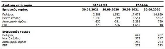 Αναλυτικότερα παραθέτουμε τα ως άνω στοιχεία για την περίοδο 01.01-30.09.2021: