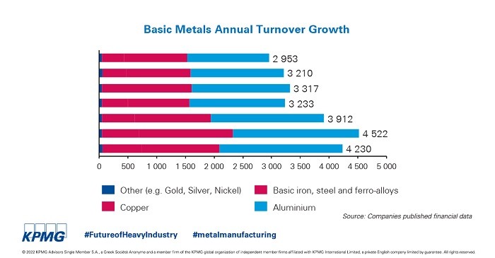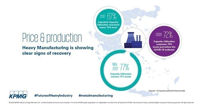 Σε τροχιά ανάπτυξης και μετασχηματισμού βρίσκεται ο τομέας των βασικών μετάλλων της βαριάς βιομηχανίας στην Ελλάδα, σύμφωνα με την έρευνα «The Future of Heavy Industry – Focus on Metals Manufacturing» της KPMG.