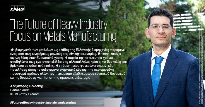 Η έρευνα «The Future of Heavy Industry – Focus on Metals Manufacturing», που πραγματοποιήθηκε από την KPMG στην Ελλάδα, διερευνά τη δομή, το μέγεθος και την ανάπτυξη της ελληνικής μεταλλουργίας, εστιάζοντας σε χρηματοοικονομικά ζητήματα και τις τάσεις του κλάδου.