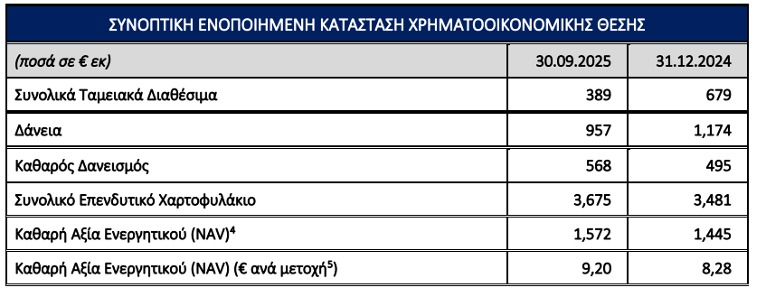 Ως αποτέλεσμα της εμπορικής αυτής επιτυχίας, οι συνολικές ταμειακές εισπράξεις από πωλήσεις/μισθώσεις ακινήτων από την έναρξη του έργου έως την 30.11.2025 ανήλθαν στα €1,5 δισ., με τις εισπράξεις το Εννεαμήνου 2025 να ανέρχονται σε €404 εκατ. από τις αρχές του 2025. Τα ταμειακά διαθέσιμα που αναλογούν στο Έργο στο Ελληνικό ανήλθαν στα €159 εκατ. την 30.09.2025 (έναντι €355 εκατ. την 30.06.2025), ενώ για μια ακόμη περίοδο δεν εκταμιεύθηκαν τραπεζικά δάνεια για το Έργο στο Ελληνικό, παρά την ύπαρξη εγκεκριμένης πιστωτικής γραμμής από τις δανείστριες τράπεζες ποσού €232 εκατ.
