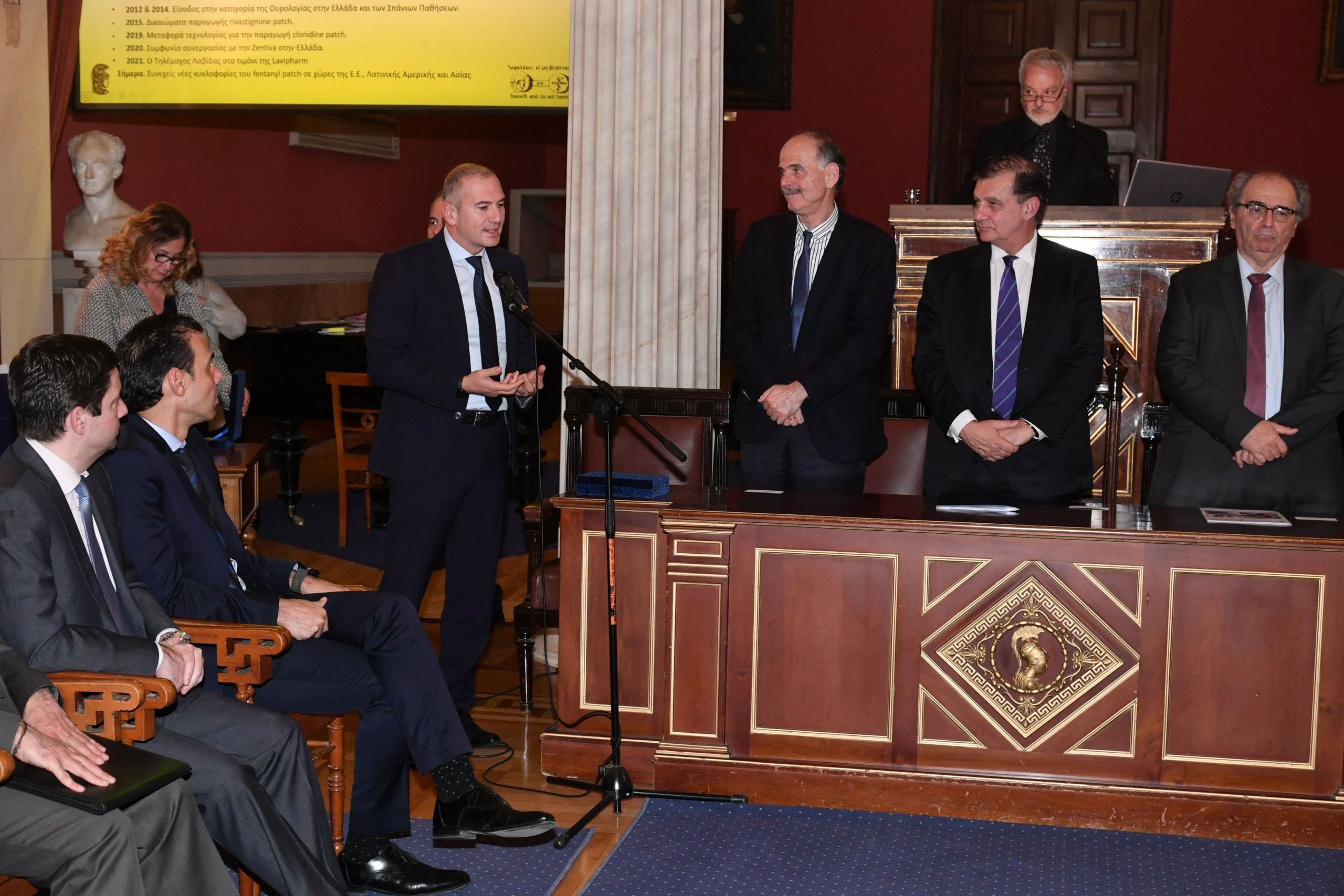 Την τιμητική πλακέτα για τη Lavipharm παρέλαβε ο κ. Παναγιώτης Γιαννουλέας, COO & Country Manager του Ομίλου, ο οποίος δήλωσε: «Στη Lavipharm παραμένουμε δεσμευμένοι στη συστηματική συνεργασία με ερευνητικούς κι επιστημονικούς φορείς, όπως το Πανεπιστήμιο Αθηνών, κι είμαστε περήφανοι για τη διάκριση αυτή της Lavipharm. Είναι σημαντική κι αξιέπαινη η πρωτοβουλία του Πανεπιστημίου να αναγνωρίζει εταιρείες που έχουν συνεισφέρει σε θέματα καινοτομίας και προόδου με τελικό προορισμό τη συνεχή βελτίωση της ποιότητας ζωής του ανθρώπου». Ο κ. Γιαννουλέας συνέχισε «Αυτό πρεσβεύουμε στη Lavipharm από το 1911, εδώ και 112 χρόνια, αυτό δίνει τον παλμό στο καθημερινό μας έργο : πώς θα βοηθήσουμε τους ανθρώπους να ζουν καλύτερα και μακροβιότερα. Ευχαριστούμε πολύ για την τιμή και ευχή όλων μας είναι η πρόοδος και η εξέλιξη της φαρμακευτικής επιστήμης να ανοίγει νέους δρόμους στη βελτίωση ποιότητας ζωής του σύγχρονου ανθρώπου».
