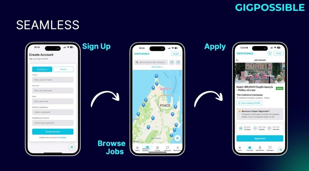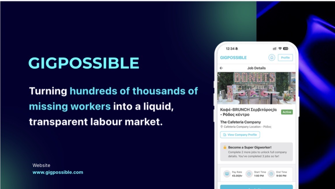 «Δημιουργήσαμε την πρώτη ελληνική πλατφόρμα Gig εργασίας και πλήρους στελέχωσης. Ξεκινήσαμε από τη Ρόδο τον Αύγουστο του 2025 και σε λιγότερο από 7 μήνες, πλήρως οργανικά, έχουμε περισσότερους από 41.000 εγγεγραμμένους εργαζόμενους, πάνω από 400 επιχειρήσεις και παρουσία σε άνω των 20 πόλεων σε Ελλάδα και Κύπρο.