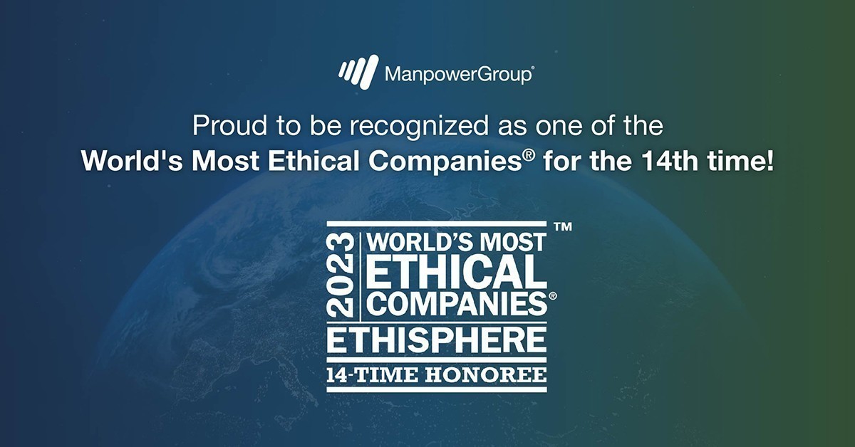 Ο όμιλος ManpowerGroup ανακοίνωσε ότι για άλλη μια φορά αναγνωρίστηκε ως μια από τις πλέον ηθικές εταιρείες στον κόσμο. Η αναγνώριση έγινε από το Ethisphere, παγκόσμιο ηγέτη στον καθορισμό και την προώθηση των προτύπων των ηθικών επιχειρηματικών πρακτικών.