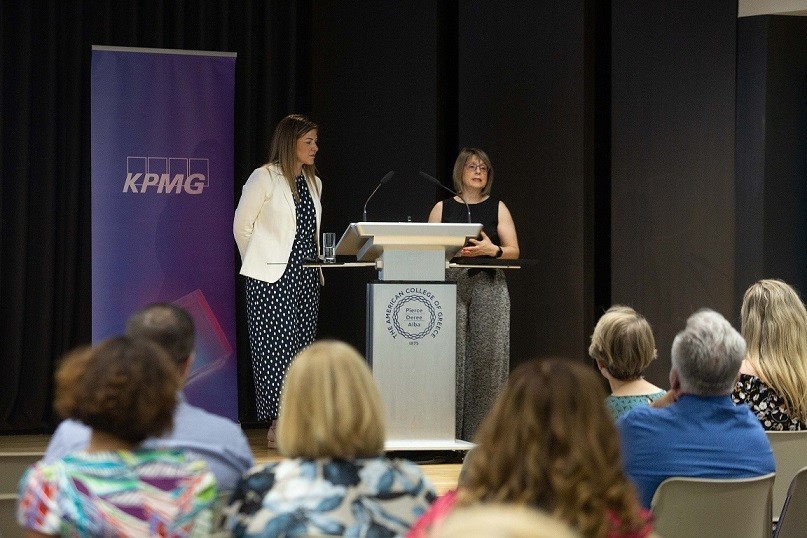 Η εκδήλωσε άνοιξε με ένα θερμό καλωσόρισμα από τη Μαριλένα Παππά, Events Coordinator, KPMG στην Ελλάδα και τον χαιρετισμό της Βερώνη Παπατζήμου, Partner, Consulting, KPMG στην Ελλάδα. Τη σκυτάλη των χαιρετισμών πήρε ο Σωτήρης Σταματίου, Group Human Resources Director, Ίδρυμα Ωνάση & Προέδρος ΔΣ, ΣΔΑΔΕ και ακολούθησε ο Μαρίνος Κλούρας, Executive Director Marketing & Communication, Αμερικανικό Κολλέγιο Ελλάδος.