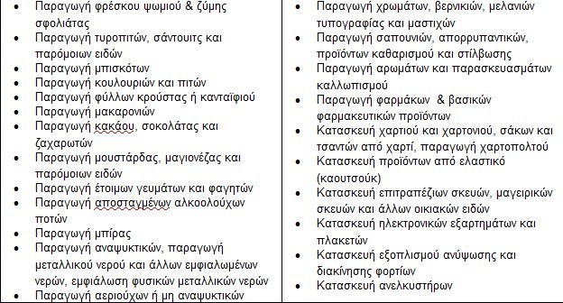 Επιδοτούμενοι κλάδοι μεταποίησης