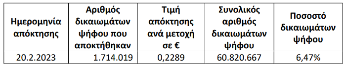 Σημειώνεται ότι έως την 20.2.2023 η εταιρία «Multiway Investments Ltd» κατείχε 59.106.648 δικαιώματα ψήφου, ήτοι ποσοστό 6,29% επί του συνόλου των δικαιωμάτων ψήφου της Εκδότριας.
