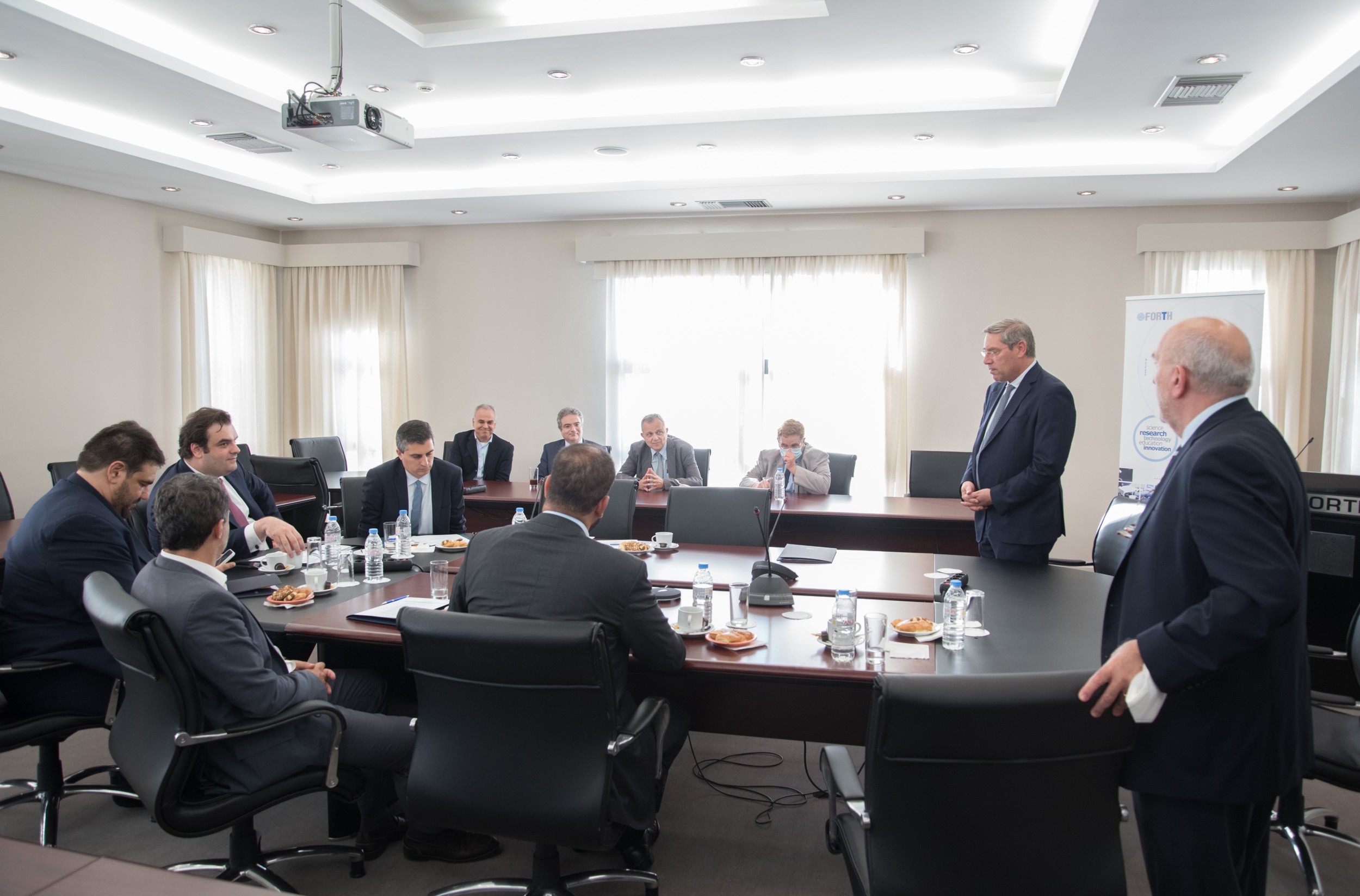 Στη συνέχεια ο κ. Δήμας και ο πρόεδρος του ΙΤΕ κ. Νεκτάριος Ταβερναράκης πραγματοποίησαν σύσκεψη με τους Διευθυντές των Ερευνητικών Ινστιτούτων. Συνάντηση εργασίας πραγματοποιήθηκε επίσης με τους εκπροσώπους των τεχνοβλαστών (spin-off εταιρειών) του ΙΤΕ, Orama VR, Code BGP, Biomimetic, Biopix DNA Technology, PCN Materials, όπου συζήτησαν για το νέο θεσμικό πλαίσιο λειτουργίας των spin-off εταιρειών, τα χρηματοδοτικά εργαλεία, το elevate greece και άλλα ζητήματα που αφορούν την έρευνα και καινοτομία.