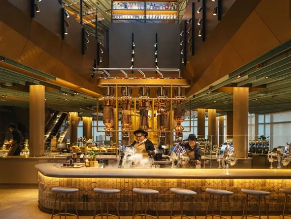 Όπως και το Tokyo Reserve Roastery που έκανε ντεμπούτο νωρίτερα αυτό το έτος, το κατάστημα θα διαθέτει αποκλειστικά ποτά και οι επισκέπτες θα τα βρουν στο Barrel-Aged Coffee Bar στον τέταρτο όροφο. Είναι εμπνευσμένα από κοκτέιλ αλλά χωρίς αλκοόλ, όπως το καπνιστό Cola Old Fashioned και το Minted Cold Brew.