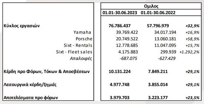 Με σημαντική ανάπτυξη σε όλα τα μεγέθη έκλεισε το α εξάμηνο του 2023 για τη Μοτοδυναμική, σύμφωνα με ανακοίνωση της εταιρείας.