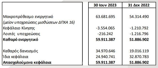 Κατά το α εξάμηνο του 2023, το μακροπρόθεσμο ενεργητικό του Ομίλου ανήλθε στα 63,7 εκ. ευρώ (εξαιρώντας την επίδραση του ΔΠΧΑ 16) παρουσιάζοντας αύξηση 17,2% έναντι του 2022. Η αύξηση οφείλεται κυρίως στις επενδύσεις σε στόλο αυτοκίνητων προς ενοικίαση (Sixt).