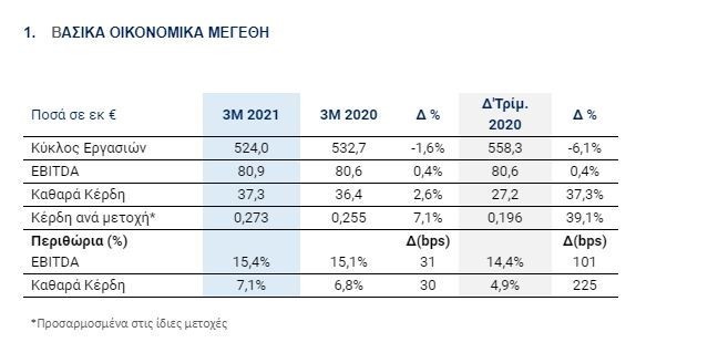 Στα 524 εκατ. ευρώ ανήλθε ο κύκλος εργασιών του ομίλου Μυτιληναίου για το α’ τρίμηνο του 2021, ενώ τα κέρδη προ φόρων τόκων και αποσβέσεων (EBITDA) διαμορφώθηκε στα 81 εκατ. ευρώ παραμένοντας στα ίδια επίπεδα τόσο με την αντίστοιχη περίοδο του προηγούμενου έτους όσο και με το αμέσως προηγούμενο τρίμηνο.